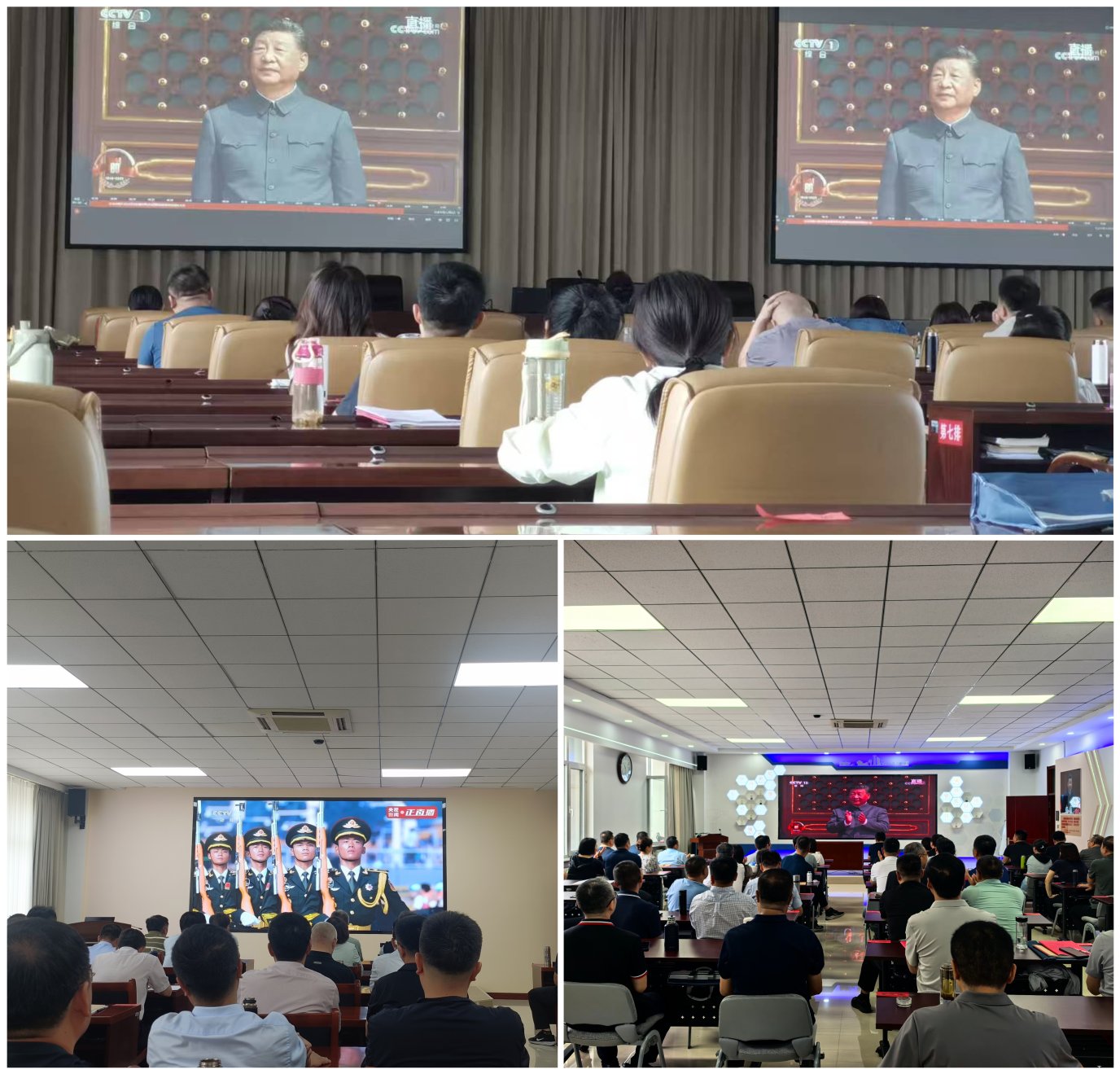 2025-09-03 中共包头市委员会党校岁月流转,历史不忘。9月3日上午,纪念中国人民抗日战争暨世界反法西斯战争胜利80周年大会在北京天安门广场隆重举行。市委党校组织全体在校学员和教职工集中观看了大会直播,共同回顾那段波澜壮阔的抗战历史,感受伟大的抗战精神。