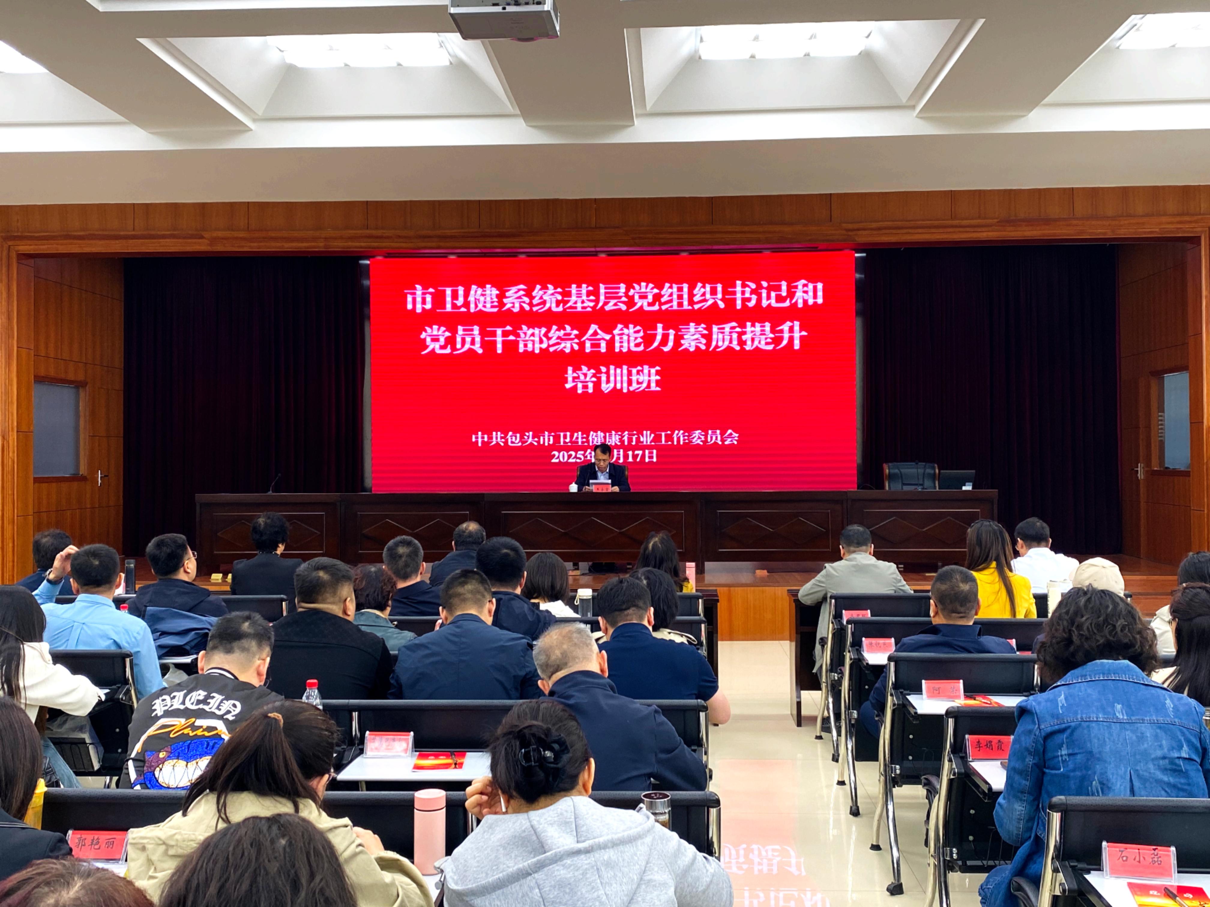 2025-04-17 中共包头市委党校为深入学习贯彻习近平新时代中国特色社会主义思想和党的二十届三中全会精神,全面落实《全国党员教育培训工作规划(2024-2028年)》,4月17日,市卫健系统基层党组织书记和党员干部综合能力素质提升培训班在市委党校西校区开班,委直属单位党委副书记、党办主任、纪检干部、党支部书记等270余人参加培训。市卫健委党组成员、副主任王永吉出席开班仪式并作动员讲话。