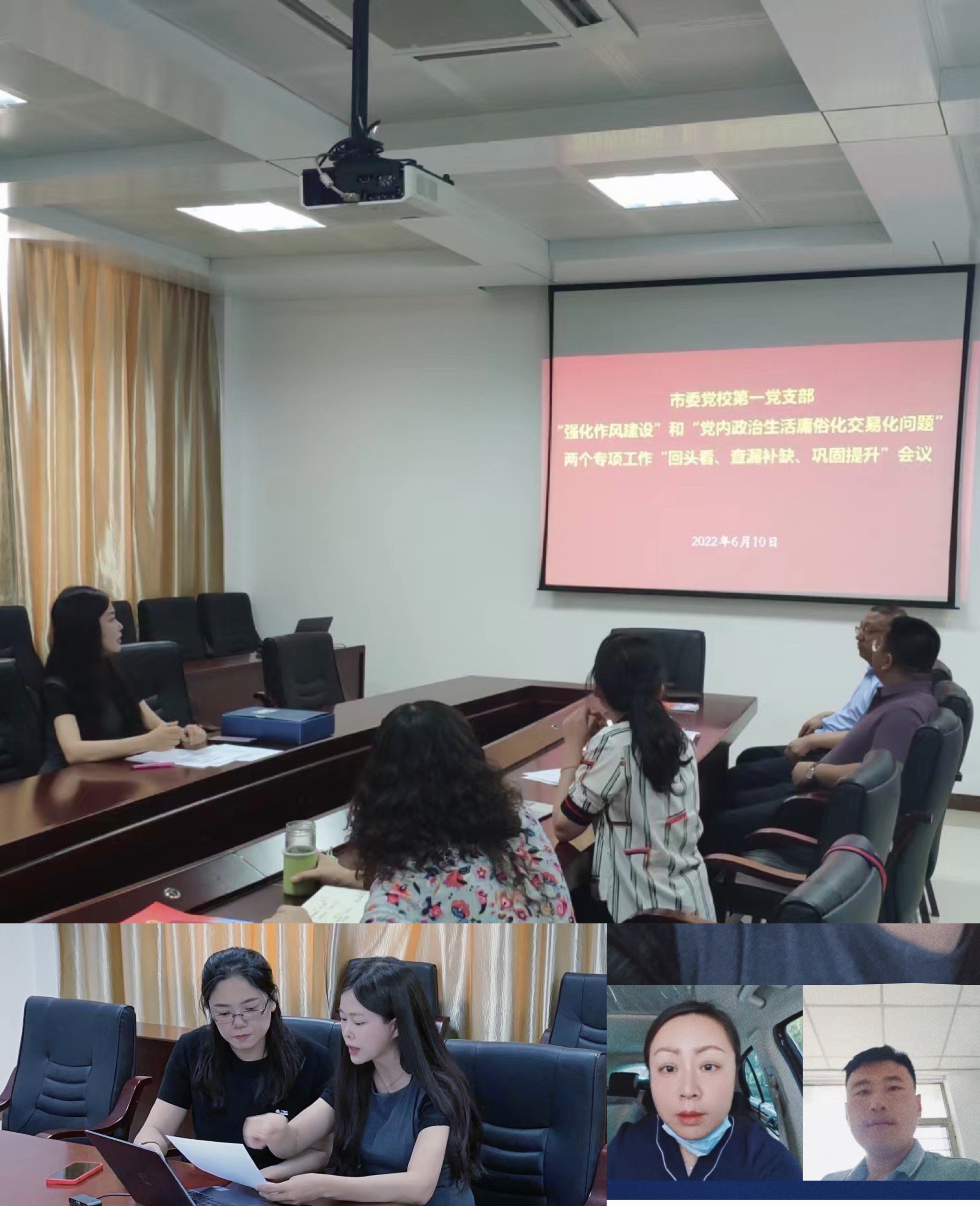 2022-06-10 中共包头市委党校2022年6月10日上午,市委党校第一党支部针对强化作风建设学习实践活动与集中治理党内政治生活庸俗化交易化问题的专项行动“两个专项”工作,召开了“回头看”专题会议,支部和每位教师逐一按照问题整改措施和整改时限,实行销号管理,整改一项、销号一项,未整改完成的九月底之前完成整改。